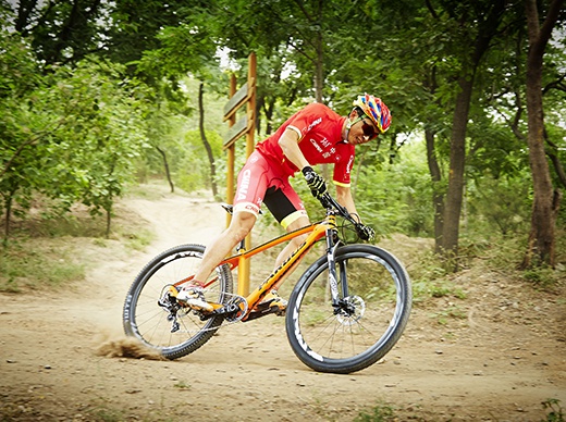 山东自行车队选手马斌在2013年全国 山地车锦标赛中骑乘星空 PARDUS自行车勇夺冠军