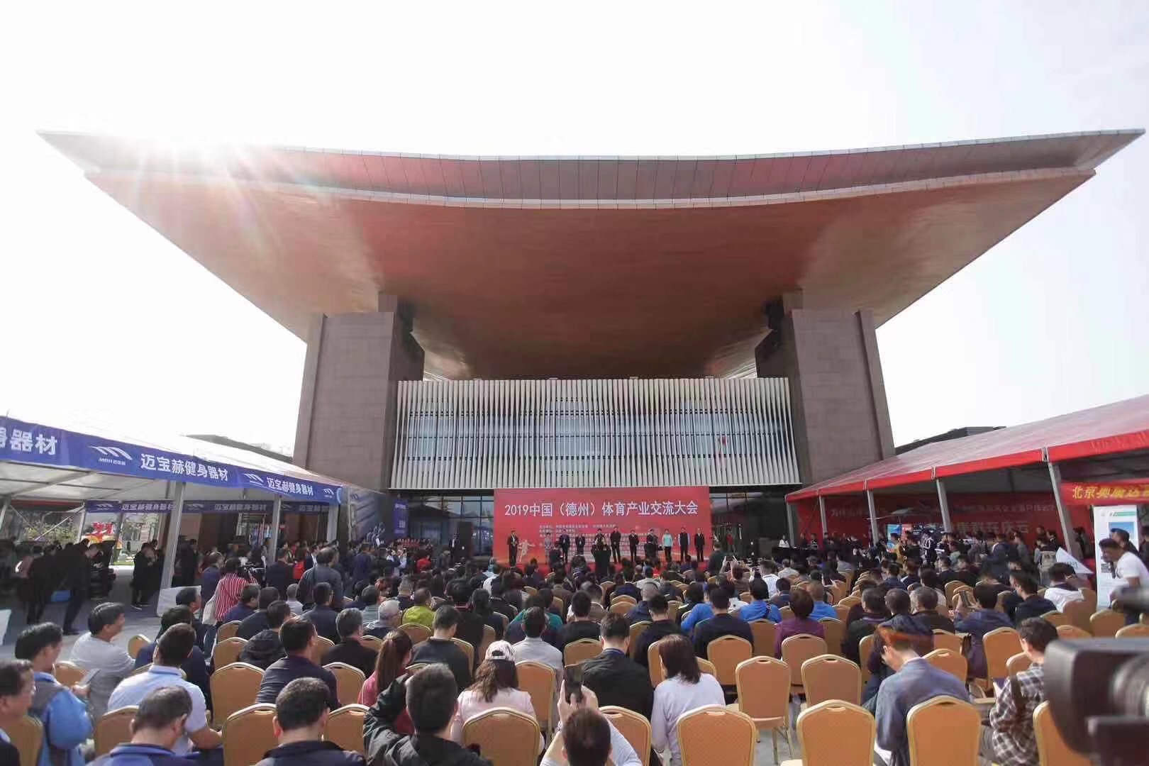 10月13日,2019中国(德州)体育产业交流大会在太阳能德州小镇开幕。大会由中国体育用品业联合会与德州市人民政府联合主办,山东省体育局支持,中国体育用品业联合会场馆事业工作委员会等单位共同承办。大会在 “融入京津冀助力新动能”的大背景下,以“德州智造·标准引领,助力体育产业升级”为主题,旨在充分展示区域体育产业发展成果,促进国际国内体育产业交流,扩大招商引资规模,搭建品牌商、渠道商和消费者展示与互动平台。开幕式上,体育产业集团荣获“明星企业”称号。