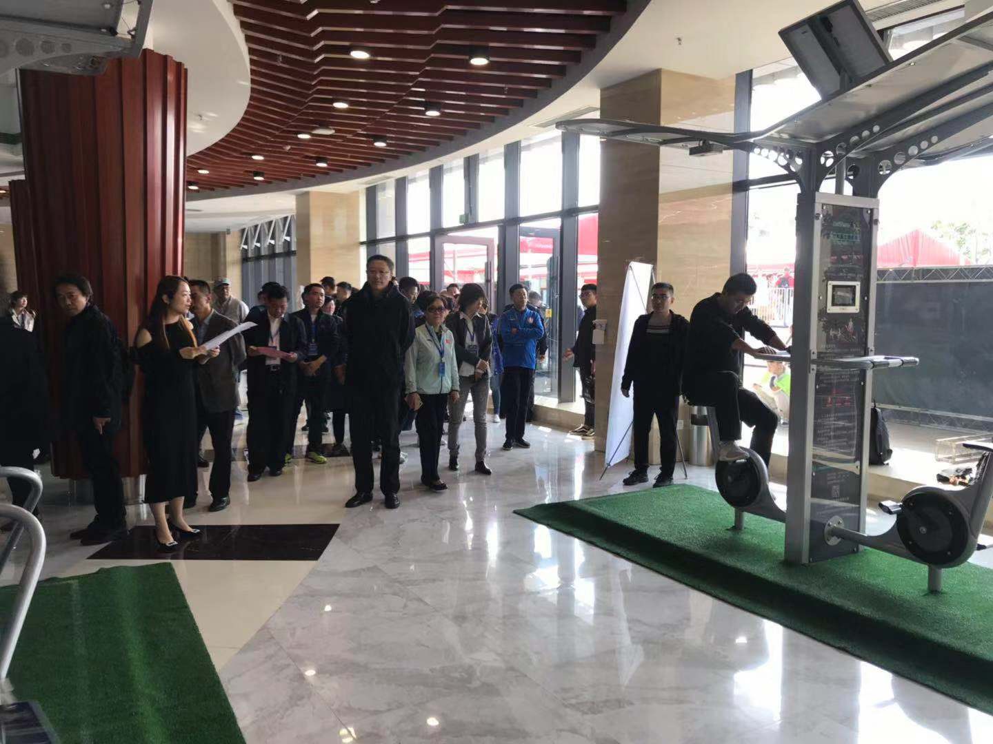 2019中国(德州)体育产业交流大会共分为四大板块,分别为中国体育用品业联合会(德州)体育产业论坛、重点企业参观调研、赛事、创新型体育产品展览。体育二代智能路径、爱动超级体测机、碳纤维自行车、碳纤维体操器材、负离子草坪等产品成为创新型体育产品成果展览上的焦点。